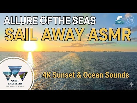π Pure Relaxation: Allure of the Seas Sail Away ASMR | Sunset, Ocean Sounds & Miami Skyline View 4K