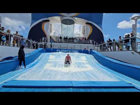 Mr Neville doing Boogie Boarding tricks on the Flowrider on Ovation of the Seas cruise 11/2024
