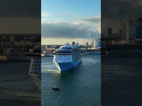 Odyssey Of The Seas cruise ship in turnaround maneuvers for departure
